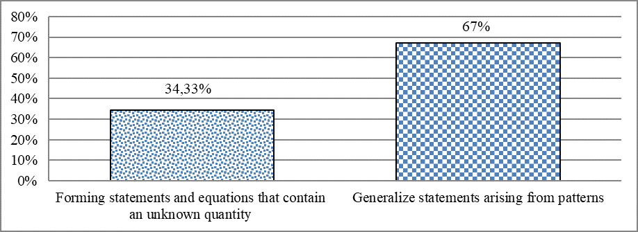 Overall, the results of students' correct answers on the test are presented in Graph 1. It shows that students can generalize the statements from patterns better than forming statements and equations.