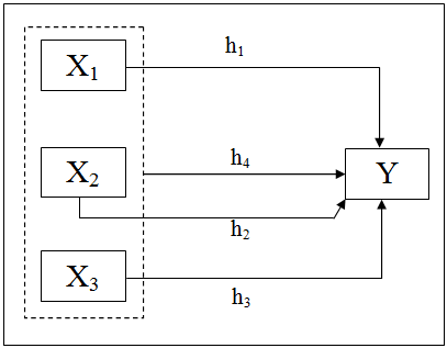 X1 (Logical-mathematical intelligence); X2 (Visual-spatial intelligence); X3 (Intrapersonal intelligence); Y (Mathematical problem-solving ability); h1 (The partial effect of logical-mathematical intelligence on mathematical problem-solving ability); h2 (The partial effect of visual-spatial intelligence on mathematical problem-solving ability); h3 (The partial effect of intrapersonal intelligence on mathematical problem-solving ability); h4 (The simultaneous effect of logical-mathematical intelligence, visual-spatial intelligence, and intrapersonal intelligence on mathematical problem-solving ability)