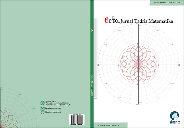 Beta: Jurnal Tadris Matematika (p-ISSN: 2085-5893 | e-ISSN: 2541-0458) is an international journal devoted to publishing and disseminating research, ideas, and practices on mathematics education. Specifically, it focuses on the critical, humanistic, political, or socio-cultural perspective of mathematics education and affects in mathematics teaching and learning. The journal is published by Universitas Islam Negeri (UIN) Mataram in collaboration with Asosiasi Dosen Matematika dan Pendidikan Matematika PTKIN (Ad-Mapeta) half-yearly (May and November) and has been indexed in SINTA 3 until 2028.